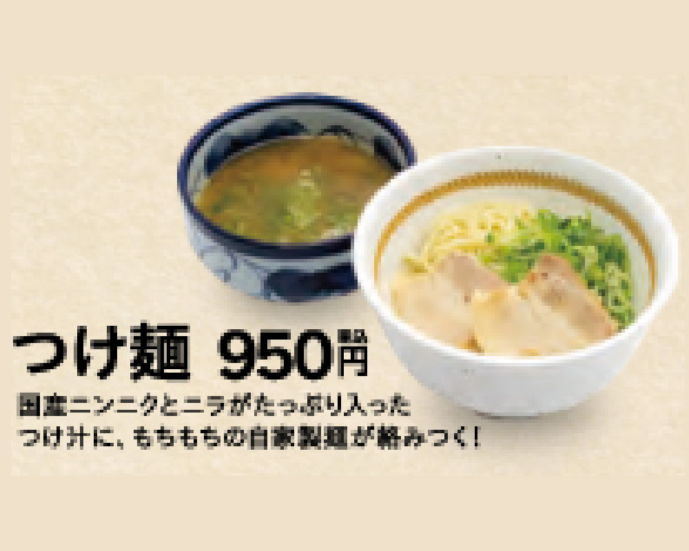 Our chewy homemade noodles perfectly cling to the rich dipping soup, packed with plenty of domestic garlic and chives!