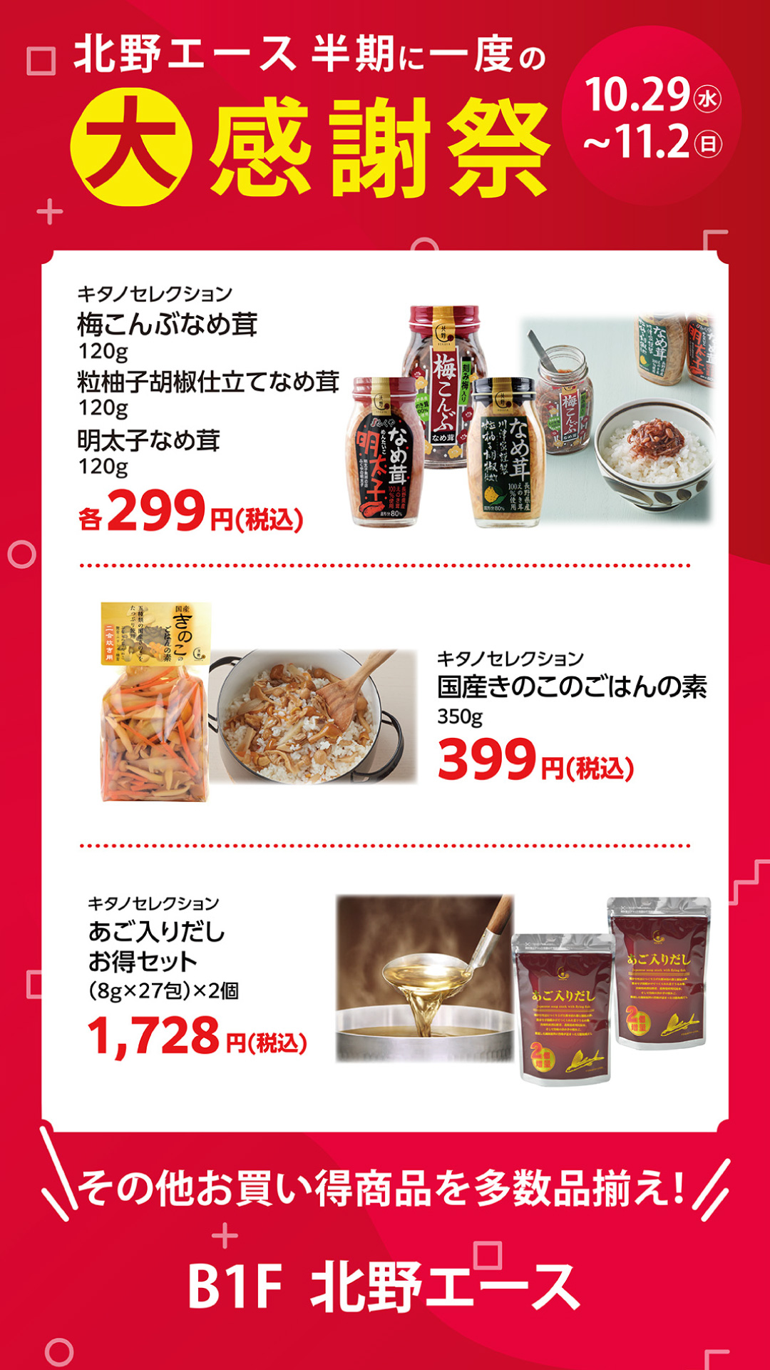 ぜひ期間中、B1F 北野エースへお立ち寄りくださいませ。
