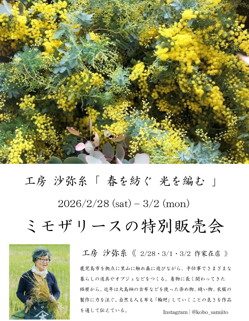 工房 沙弥糸「春を紡ぐ 光を編む」ミモザリース特別販売会