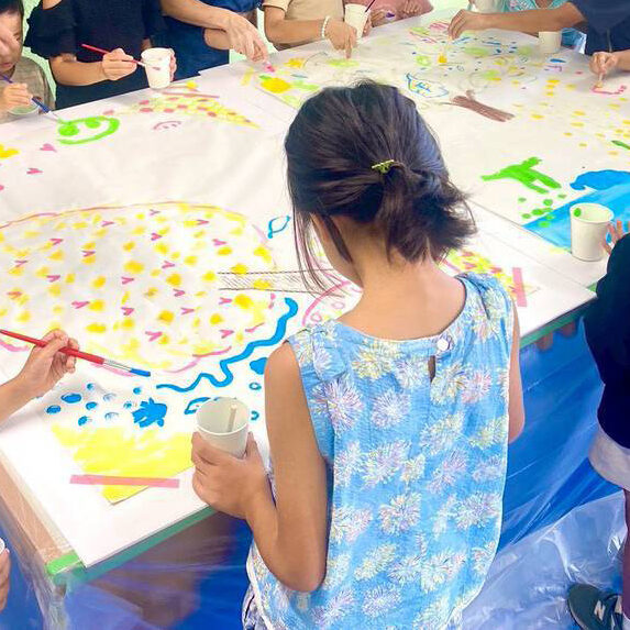 みんなで描こう!おっきな布にソラニワの春をのせて