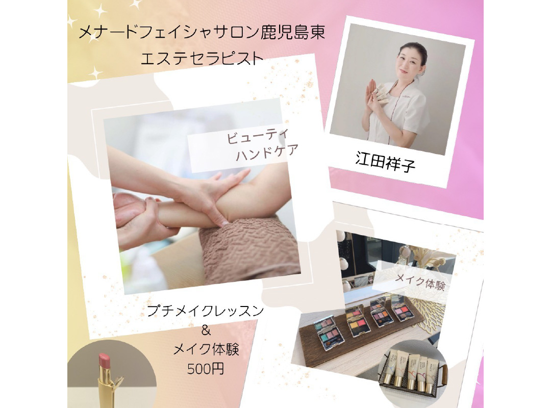 出店内容「フェイシャルミスト、ビューティハンドケア、メイク体験」