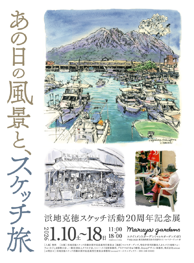 2005年から鹿児島を拠点に国内外をスケッチしてきた浜地克徳の軌跡を6つのテーマでたどります。