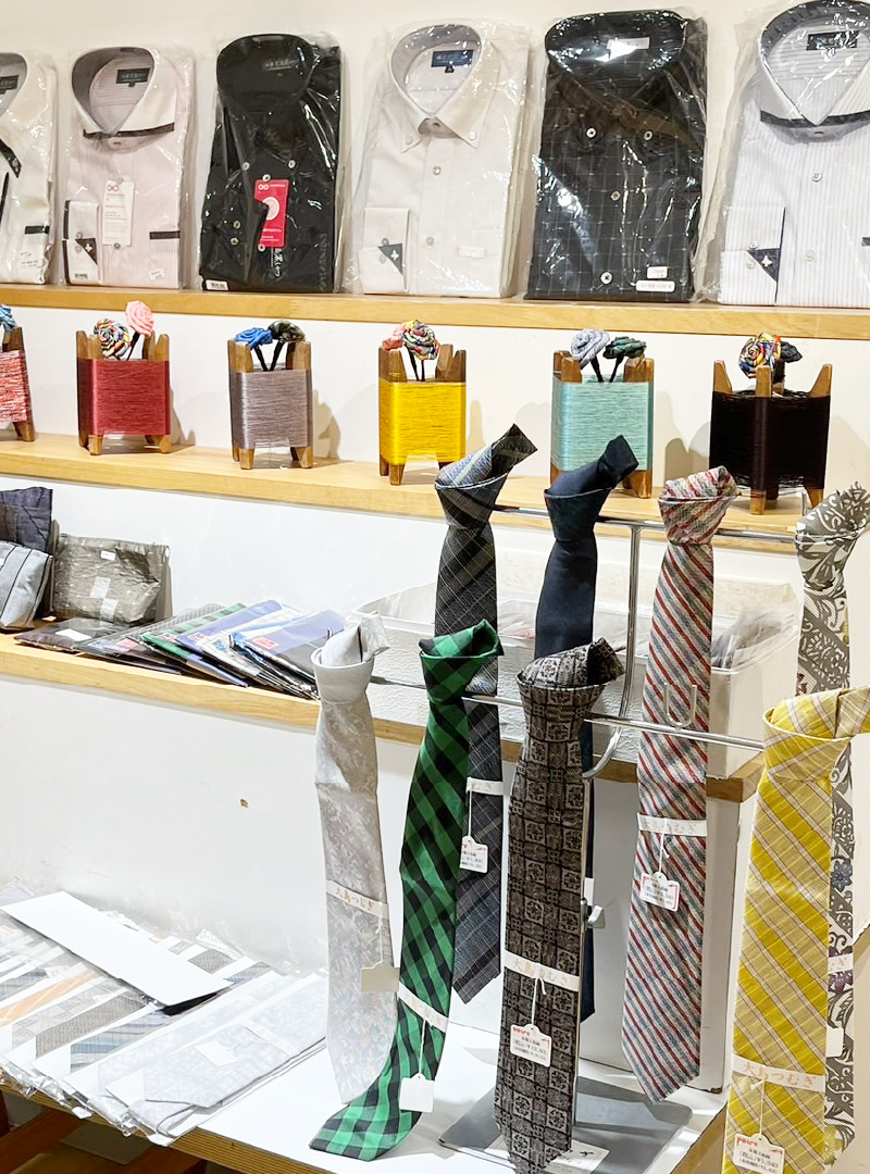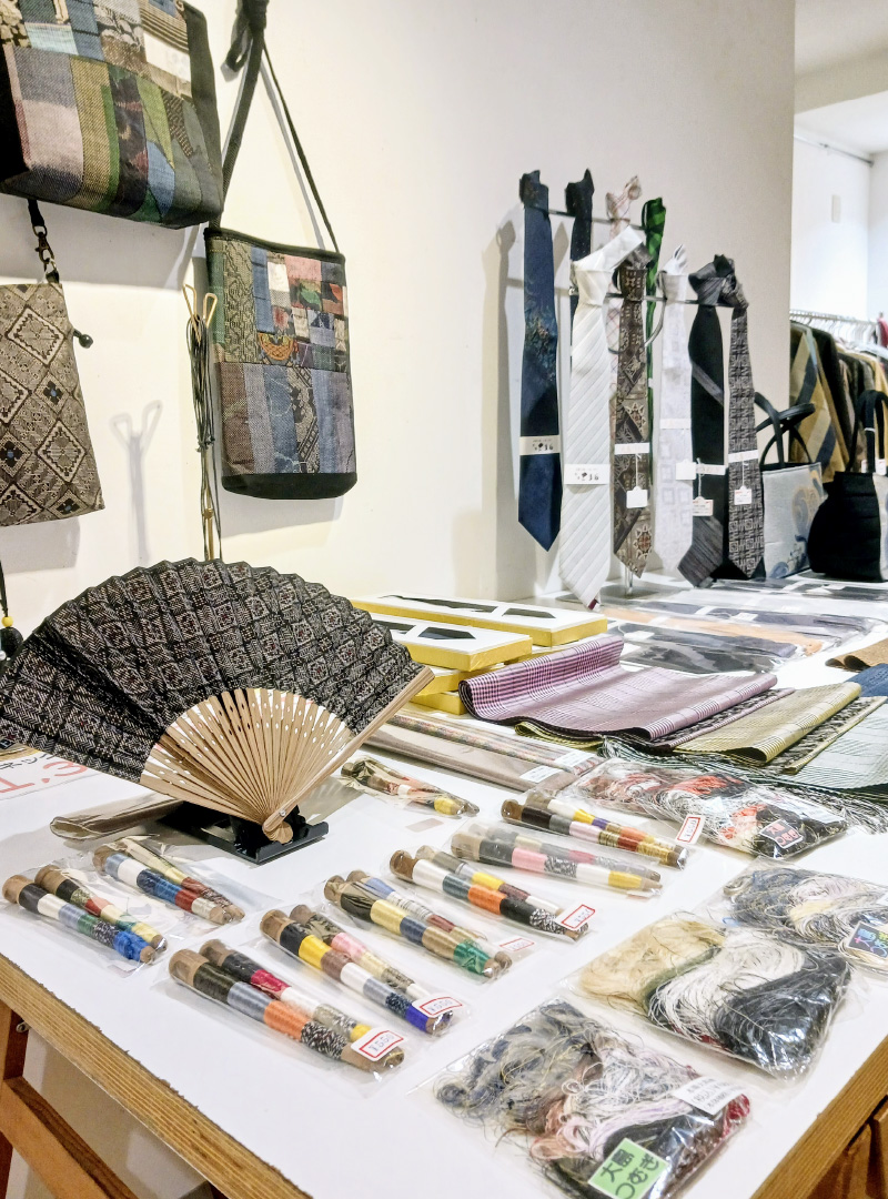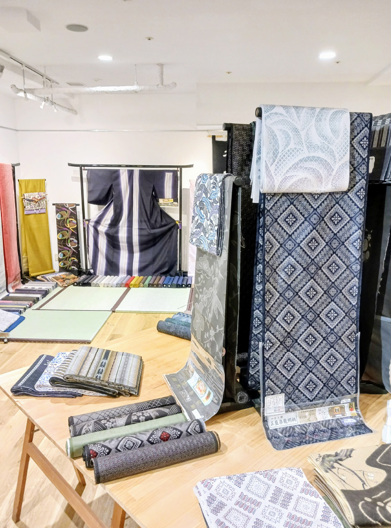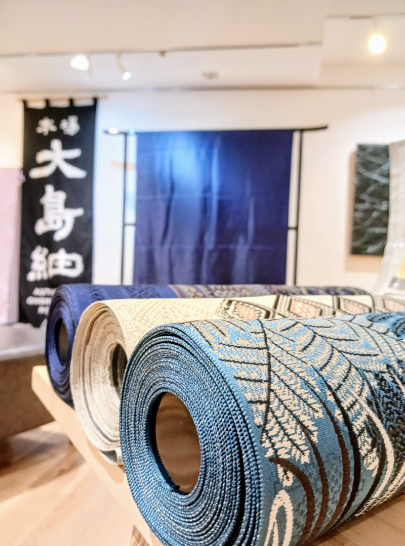 新作大島紬の展示および販売をはじめ、反物以外にも大島紬を使用した洋装や小物等、様々なアイテムの販売も御座います。
