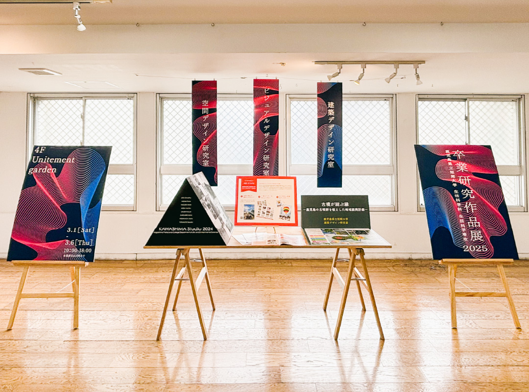 鹿児島県立短期大学生活科学科生活科学専攻の建築デザイン、ビジュアルデザイン、それぞれの研究室に所属する学生の卒業研究作品展になります。