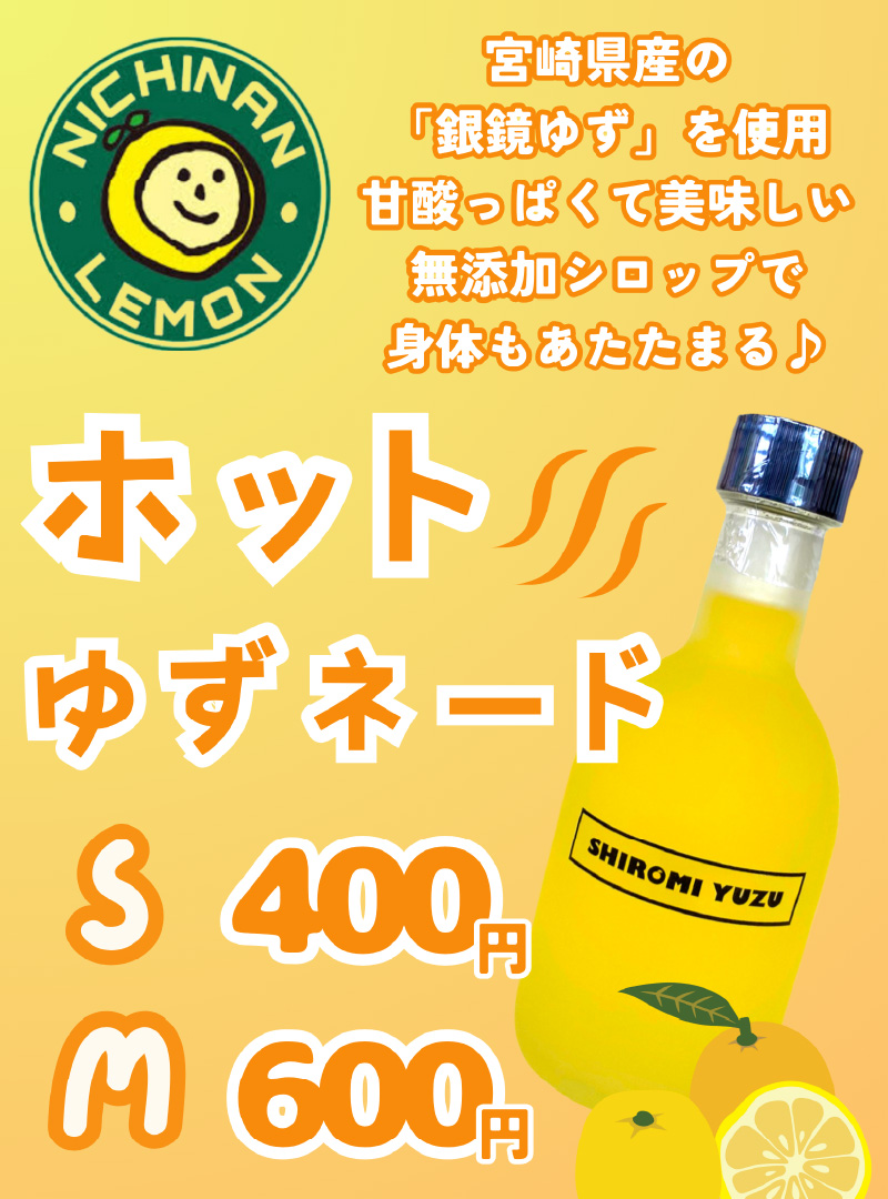 爽やかな酸味とやさしい甘さのシロップを使った、美味しい日南レモンドリンクを是非ご賞味ください。