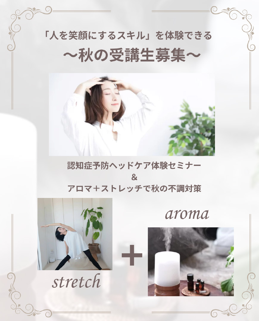 - 認知症予防ヘッドケア体験セミナー &アロマ+ストレッチで秋の不調対策