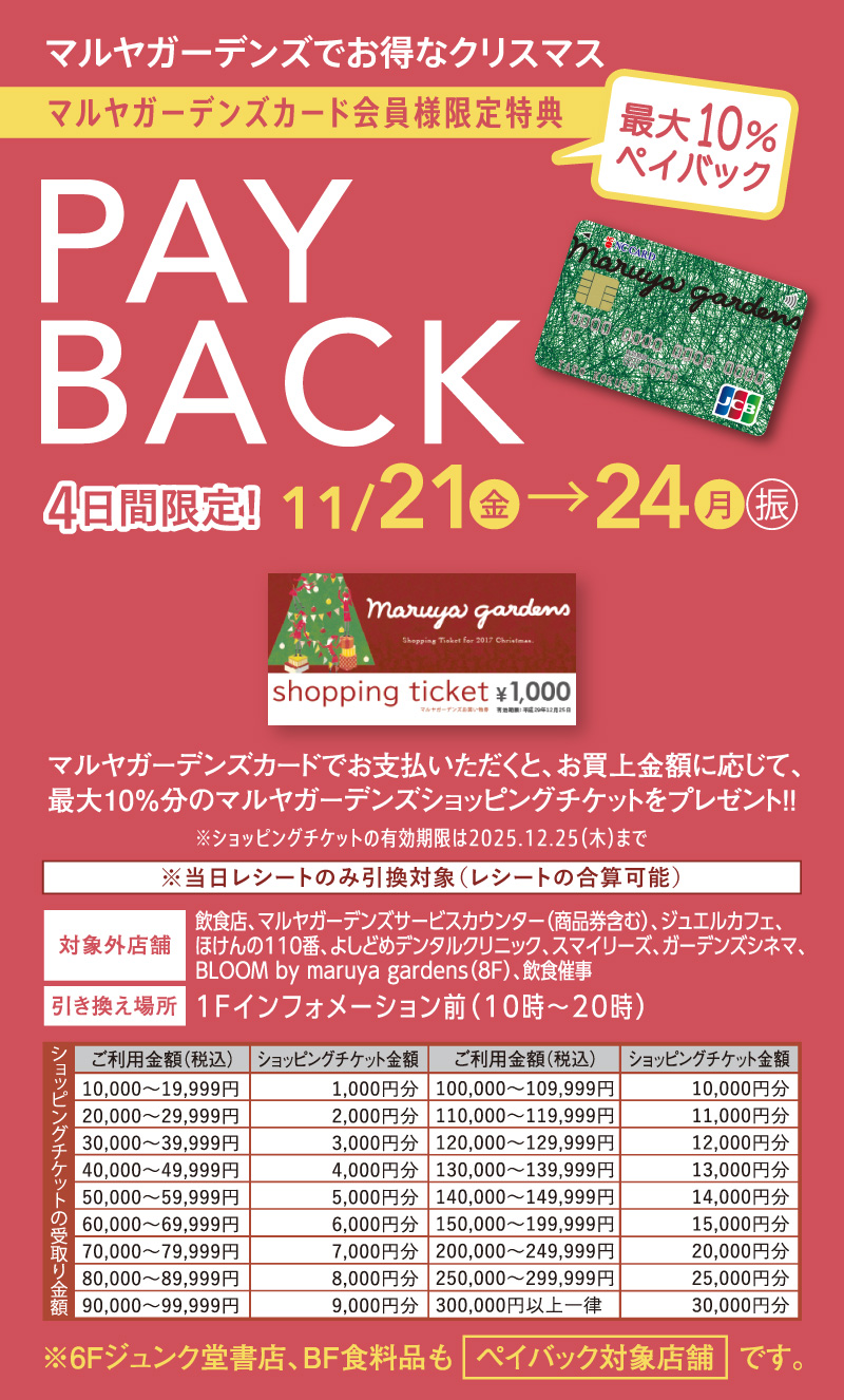お買い上げ金額に応じて最大10%分のマルヤガーデンズショッピングチケットプレゼント♩