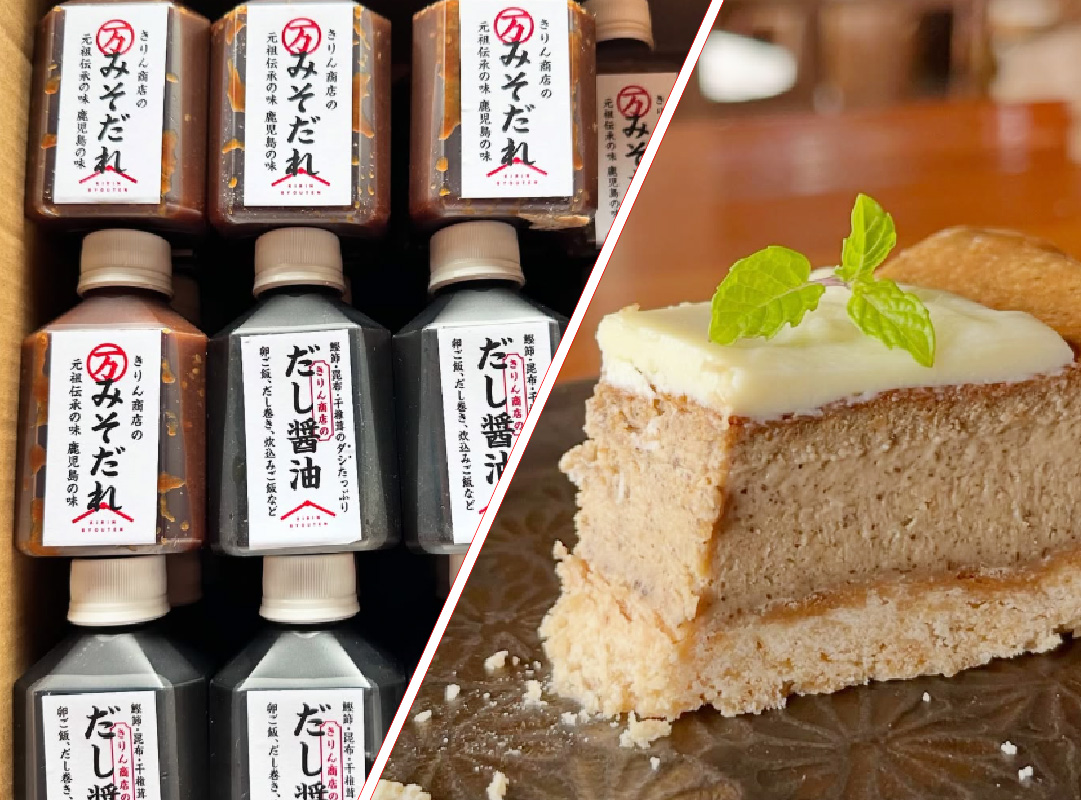 きりん商店は2024年11月に鹿児島県霧島市から鹿児島県阿久根市へ。山から海へ移転しました。みそだれやだし醤油、またきりんビルのテナントであるチーズケーキ専門店”Coalaco”の商品を販売します。