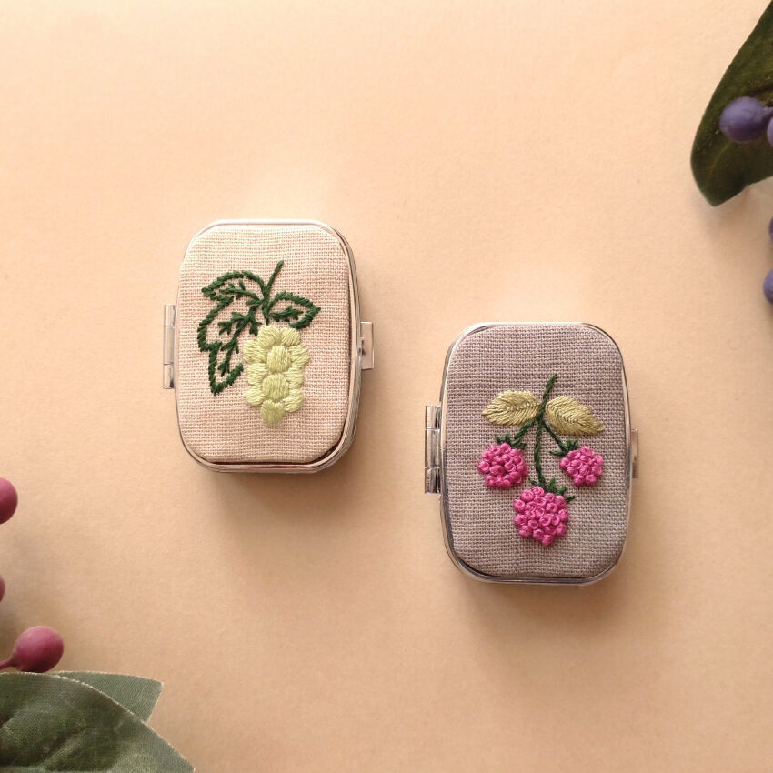 植物などのデザインを刺繍し、刺繍の小物ケースをつくります。
