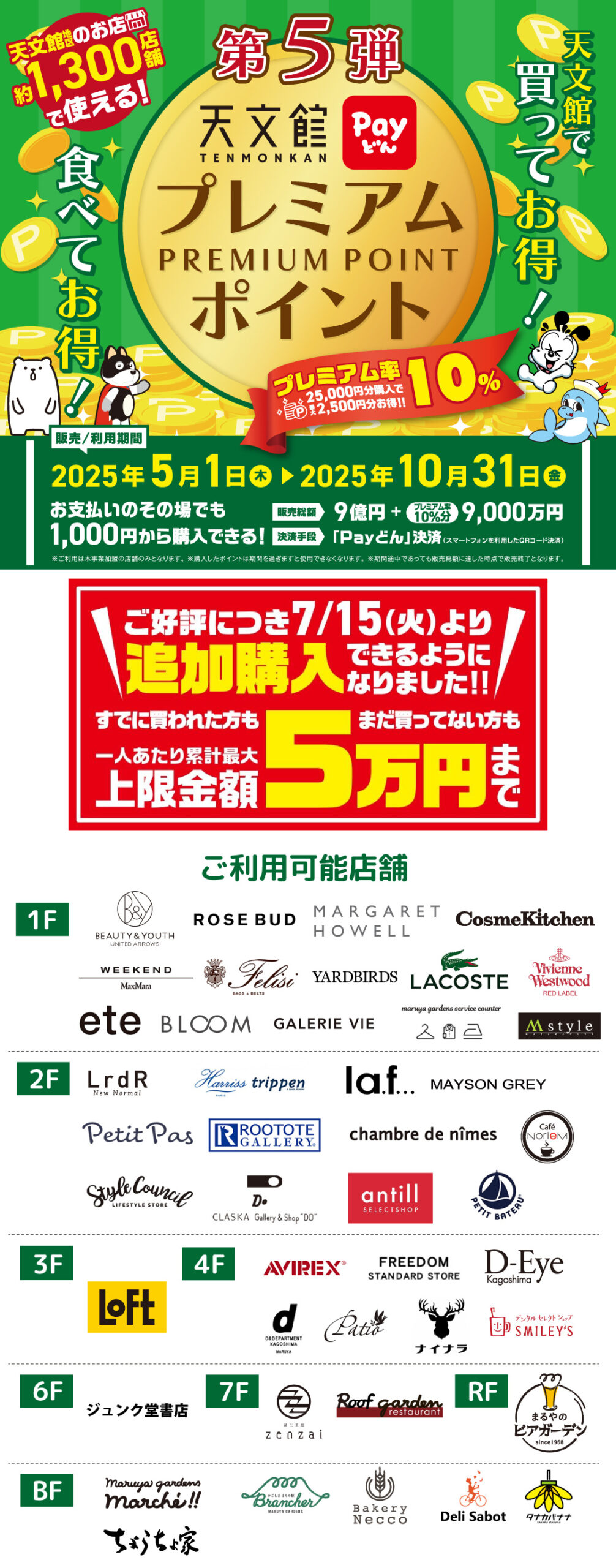マルヤガーデンズ各店舗にて「第5弾 天文館プレミアムポイント」がご利用いただけます♩