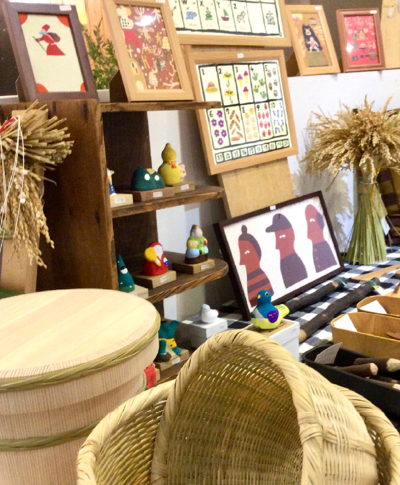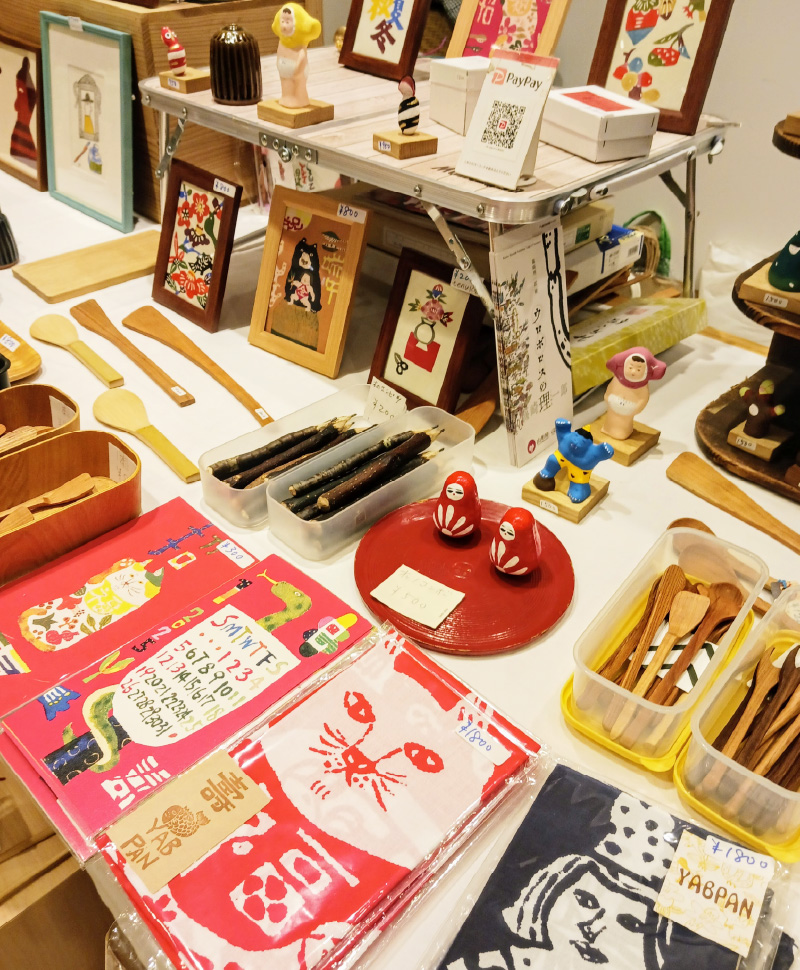 イケダユーコの水彩絵画と、tenukaセレクトの日本の民芸品・工芸品が並ぶ展示販売POP UPイベント。