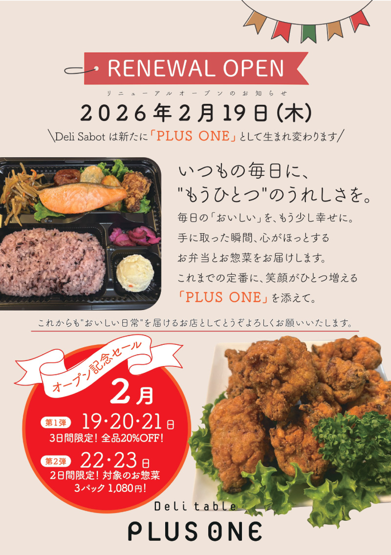 \Deli Sabotが「Deli table PLUS ONE」に生まれ変わります/